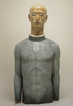最近我有越来越多的机会在照片或其他书的封面上去观赏舟越桂先生的雕塑。每一次,我都感觉到那种永恒的沉寂。随着一次又一次的观赏,我开始注意到一些其他的东西,那些站在肃然而静止的空气中的雕塑形象似乎在试图说出点什么。无论是紧闭的还是微张的嘴,词语开头的音节好像就盘旋在他们周围。不过,那开头的音节却从未出声。词语在努力向外冒,但却定住或如无声的音一般在那儿摇曳,不是潜伏在唇齿之间,而是神秘地盘旋在每一个雕像的周围。